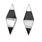 Sterling silver post diamond shape erarrinmgs inlaid with 4 sections of stabilized white buffalo and silver dividers. It measures 1 1/16" long by 3/8" wide. Post is at the top. It is Navajo handmade and inlaid by Andrew Enrico. Amount of black will vary and placement may be alternating or next to each other. You may not get the color placements as pictured.