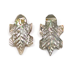 These horn toad earrings are hand carved out of abalone shell,  They measure approximtely 3/4" long by just under 1/2" wide.  They are Navajo hand carved by Christopher McCabe.  Sizes may vary a little as they are hand carved.  Color shades vary in the shell also.  Sterling post is in the center.