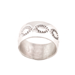 This sterling silver stamped band is made of #3 low dome wire, and has assorted stamping and is high polish finish.  It measures just under 1/2" wide.  It is Navajo hand made by Wilson Sandoval.  Stamping will vary.   Available in size 7 thru 12.  Choose size when ordering.